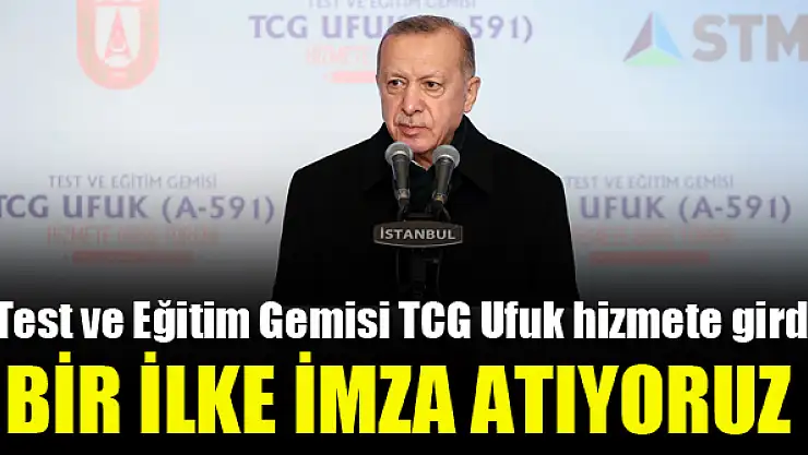 Cumhurbaşkanı Recep Tayyip Erdoğan, Test ve Eğitim Gemisi TCG Ufuk’un Hizmete Giriş Töreni'nde açıklamalarda bulundu. "Ufuk Gemimizin Milli İstihbarat Teşkilatı'na hayırlı olmasını diliyorum." diyen Erdoğan, Milli Savunma Sanayii alanında yapılan yatırımlara dair de önemli mesajlar verdi. Bir ilke imza atıyoruz diyerek duyurduğu müjde de ise Erdoğan: 3 savaş gemisini aynı anda inşa ediyoruz" ifadelerini kullandı.
