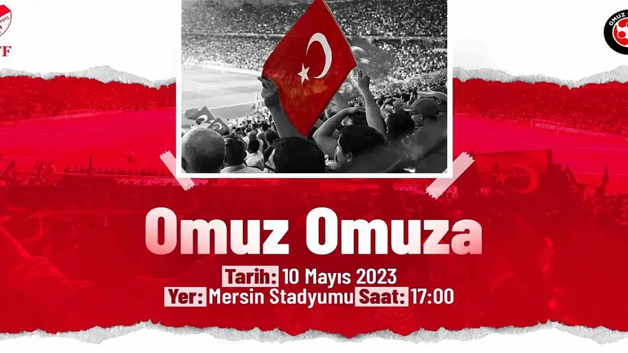 "Deprem nedeniyle ligden çekilmek zorunda kalan kulüplerimizden Hatayspor'un gelecek sezon hem takım olarak çalışmalarını sürdüreceği Mersin Erdemli Tesisleri hem de karşılaşmalarını oynayacağı Mersin Stadyumu'nun yer aldığı Mersin ilimizde yaşayan 110 bin depremzede vatandaşımızla buluşacağımız, tüm vatandaşlarımızın tribünlerden ücretsiz olarak izleyebileceği "TFF Omuz Omuza Gösteri Maçı", 10 Mayıs 2023 Çarşamba günü saat 17.00'de başlayacak olup futbolcular, sanatçılar ve depremzede çocukların katılımı ile gerçekleşecektir."