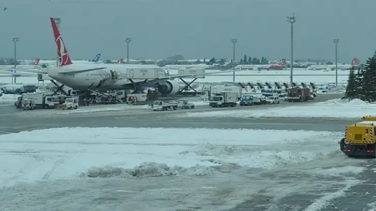 THY'nin resmi internet sitesinden yapılan açıklamaya göre, İstanbul Atatürk ve Sabiha Gökçen havalimanlarında, beklenen kar yağışı, buzlanma ve kuvvetli rüzgar gibi meteorolojik hadiseler nedeniyle planlanan 113 tarifeli sefer yapılamayacak.