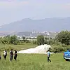 Jandarma ve itfaiye ekipleri olay yerinde güvenlik önlem alırken, uçağın üstünün brandayla örtüldüğü görüldü.