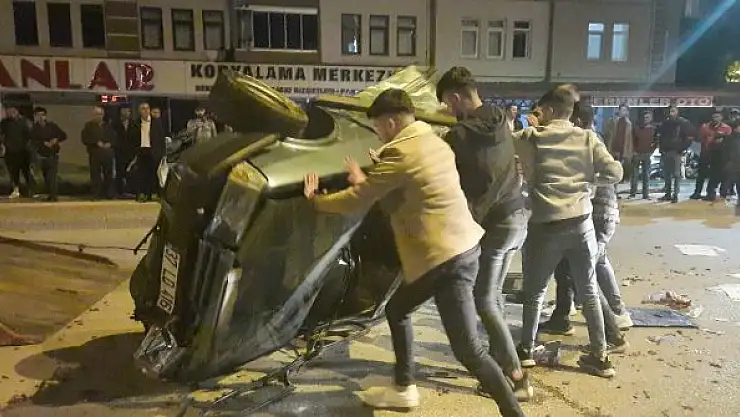 Kastamonu'da kavşakta ticari taksi ile çarpışması neticesinde takla atan otomobilin sürücüsü yaralandı.