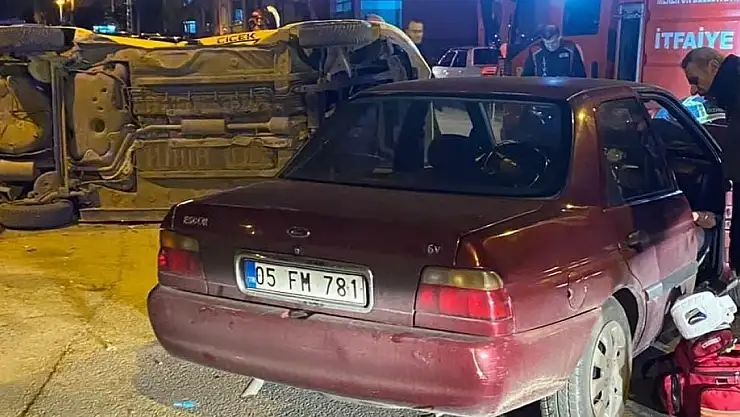 Edinilen bilgiye göre, akşam saatlerinde Mahsen Mahallesi Halim Seyit Efendi Caddesi'nde N.G yönetimindeki 05 T 5145 plakalı ticari taksi ile V.K'nın kullandığı 05 FM 781 plakalı otomobil çarpıştı. Kazada yan yatan ticari taksinin sürücüsü ve yolcu V.K ile diğer otomobildeki N.C.Ö hafif şekilde yaralandı.