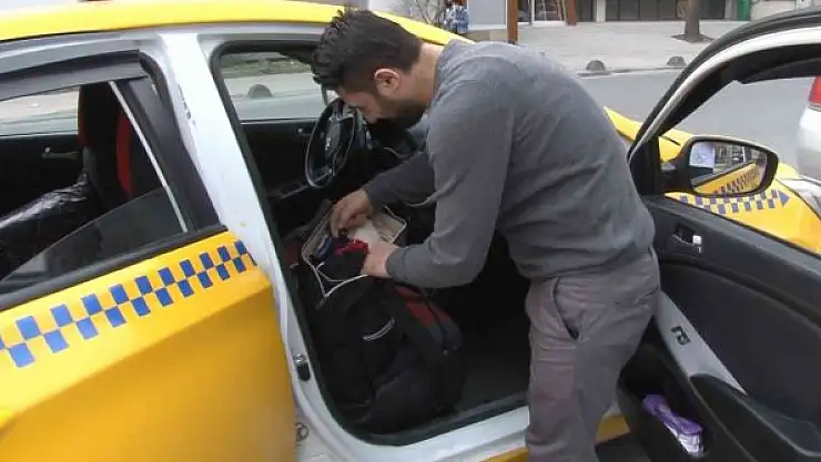 Ticari takside unutulan para dolu çantayı sahibine teslim etti