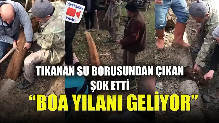 Amasya'nın Doğantepe köyünde tıkanan su borusunu tamir ettirmeye çalışan köylüler borunun içini kaplayan 6 metre uzunluğunda ağaç köküyle karşılaştı. Gördükleri karşısında şaşıran köylüler borunun içinden çekip aldıkları ağaç kökünü boa yılanına benzetti.