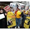 Times Meydanı'nda toplanan bir grup Mısırlı, ülkelerinde yapılan darbe ve darbe karşıtlarına yönelik şiddete tepki gösterdi. Çoğunluğunu kadın ve çocukların oluşturduğu protestocular, Rabia sembollü tişörtler giyerek hazırladıkları Sisi'yi tasvir eden kuklayı gösteri alanında gezdirdi.