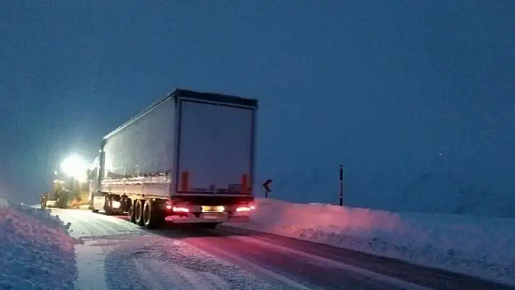 Tipi ve karda mahsur kalan tır kurtarıldı