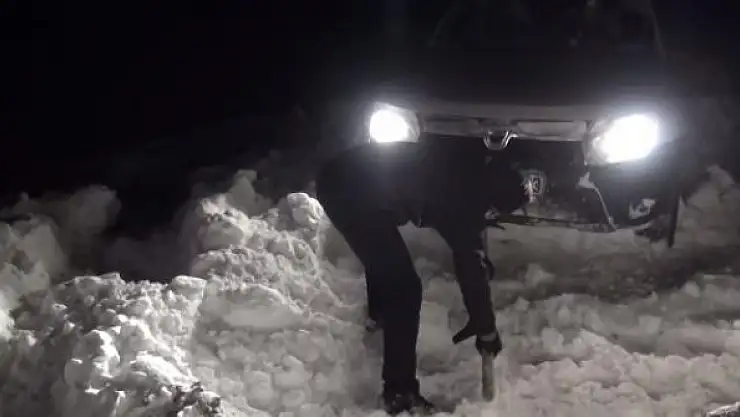 Yoğun bir çalışma sonucu basın mensuplarına ulaşan ekipler, tipi nedeniyle kara saplanan aracı kurtarmak için mücadele etti.