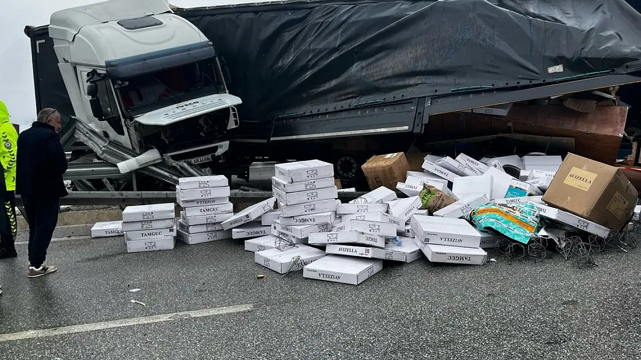 TIR bariyere çarptı: 1'i ağır, 2 yaralı