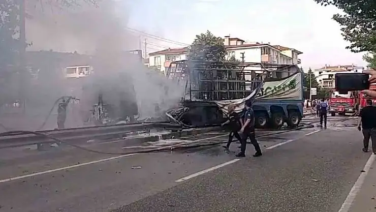 Alev alarak adeta bomba gibi patlayan araç içerisindeki sürücü kendini son anda dışarıya atarak yanmaktan kurtuldu. Patlama esnasında çekilen görüntüler ise olayın şiddetini gözler önüne serdi. Karayolunda uzun araç kuyrukları oluştu.