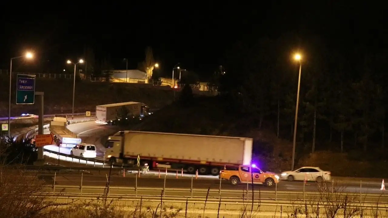 Otoyolu açmak için Polisin ve Karayolları ekiplerinin çalışması sürüyor.