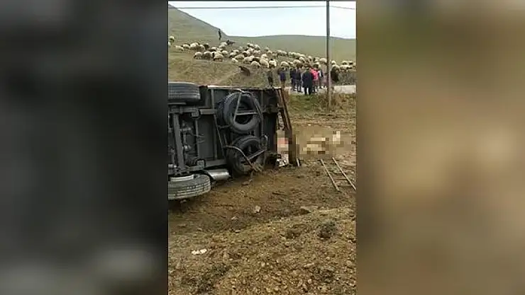 Kazada onlarca koyun telef olurken, kaza sonrası koyunlar yola dağıldı.