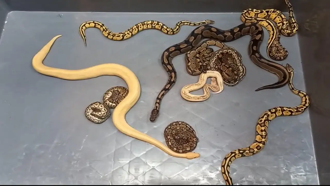 Tır dorsesesinde çorap içinde 28 piton yılanı yakalandı