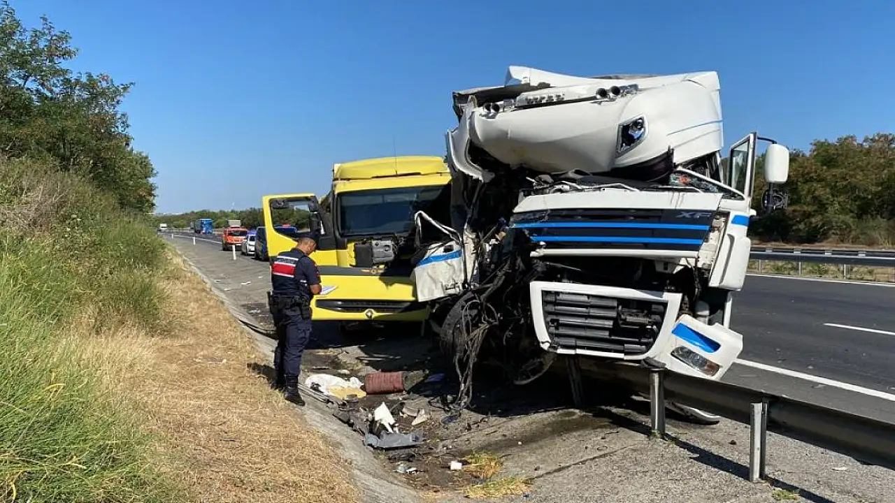 Tekirdağ'da, arıza nedeniyle sürücüsünün güvenlik şeridinde ilerlediği hafriyat kamyonuna aynı yöne giden TIR çarptı. Kazada, TIR'ın Romanyalı şoförü Vasile Pamdabologa ağır yaralandı.