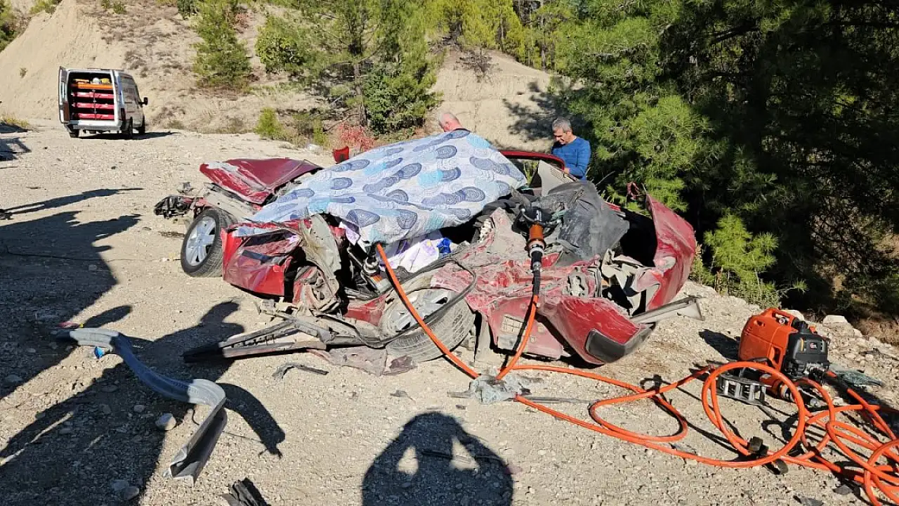 Otomobilde sıkışan 2 kişinin cesedinin çıkarılması için çalışma başlatıldı.