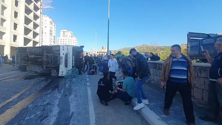 Kazada, midibüs sürücüsü ile araçtaki 32 kişi yaralandı. İhbar üzerine kaza yerine itfaiye, polis ve sağlık ekipleri sevk edildi.