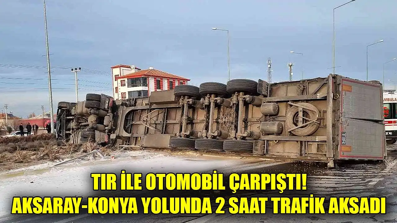 Aksaray'da tırın otomobil ile çarpışması sonucu 5 kişi yaralandı. Kazada devrilen tır nedeniyle Aksaray-Konya yolunda 2 saat trafik aksadı.