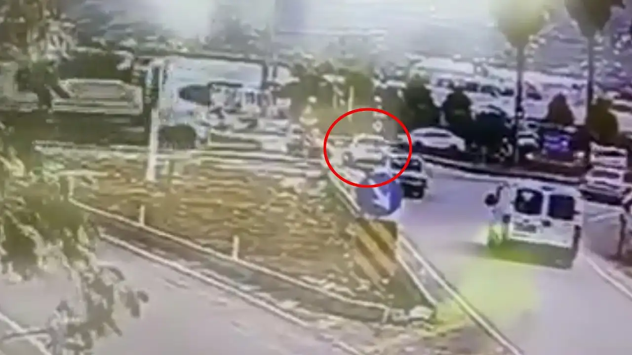 Bu arada kaza ve mermer blokun savrulması bölgede bulunan bir iş yerinin güvenlik kamerasına yansıdı.