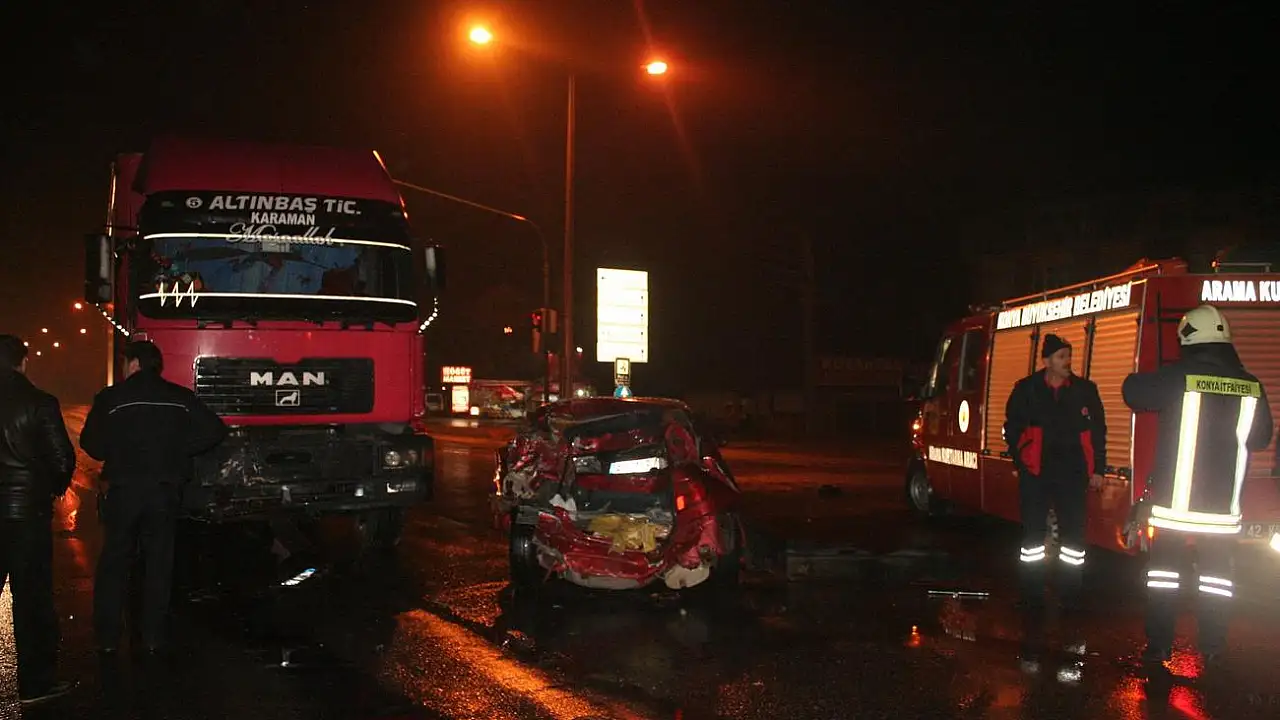 Fatih A. (27) yönetimindeki 70 FT 145 plakalı tır, merkez Karatay ilçesi Çataltömek Mahallesi Küçük Kumköprü Caddesi kavşağında, kırmızı ışıkta bekleyen Durmuş Özgül (29) idaresindeki 42 AYR 10 plakalı otomobile arkadan çarptı.