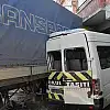 Kazada tır sürücüsü ile park halindeki yolcu minibüsünde bulunan 8 kişi yaralandı.