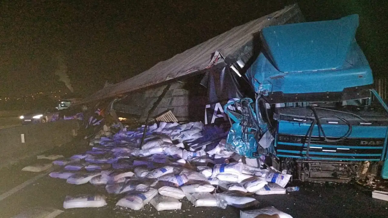 TIR, park halindeki kamyona çarptı: 1 ölü, 2 yaralı