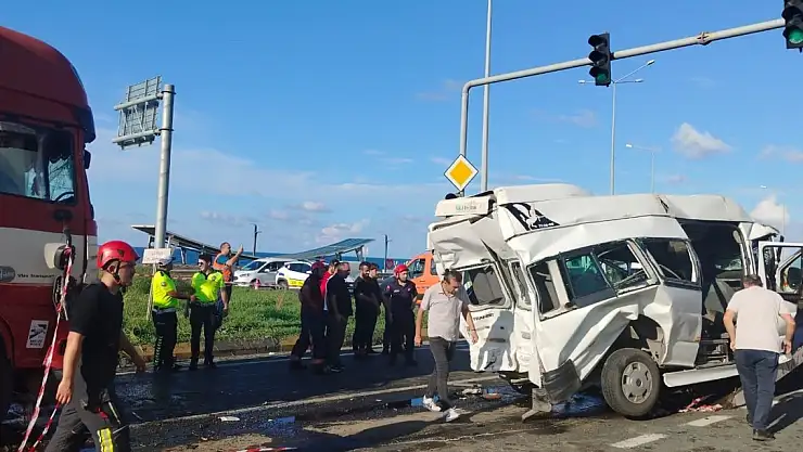 TIR, trafik ışıklarında bekleyen minibüse çarptı: 15 yaralı