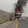 Tır yolun ortasında cayır cayır yandı