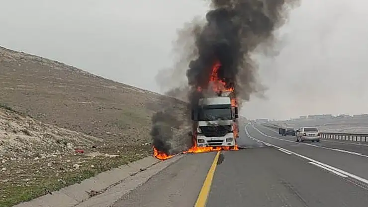 Edinilen bilgiye göre olay, Şanlıurfa -Gaziantep karayolunun Arat Dağı mevkisinde meydana geldi. Sürücüsü belirlenemeyen 27 AAE 704 plakalı tır, motor kısmında başlayan yangınla alev topuna döndü. Sürücüsünün yangın söndürme cihazı ile müdahale ettiği yangın bir anda büyüyerek aracın ön bölümünü tamamen sardı. Alev topuna dönen tır kullanılamaz hale geldi. Yangın bölgeye giden itfaiye ekipleri tarafından söndürüldü. Olayla ilgili soruşturma başlatıldı.