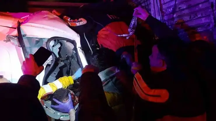 Tıra arkadan çarpan ve hurdaya dönen kamyonette 3 kişi yaralandı