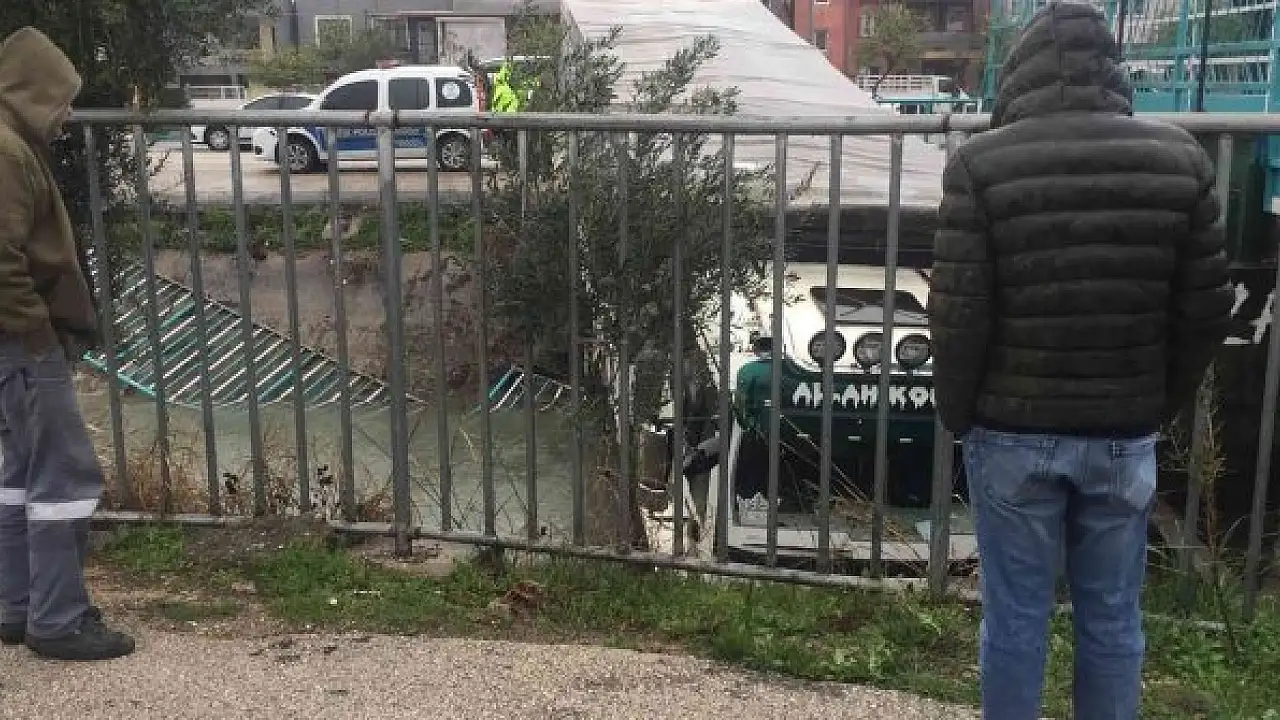 Adana'da sulama kanalına düşen tırda mahsur kalan sürücü kendi imkanıyla araçtan çıktı.