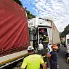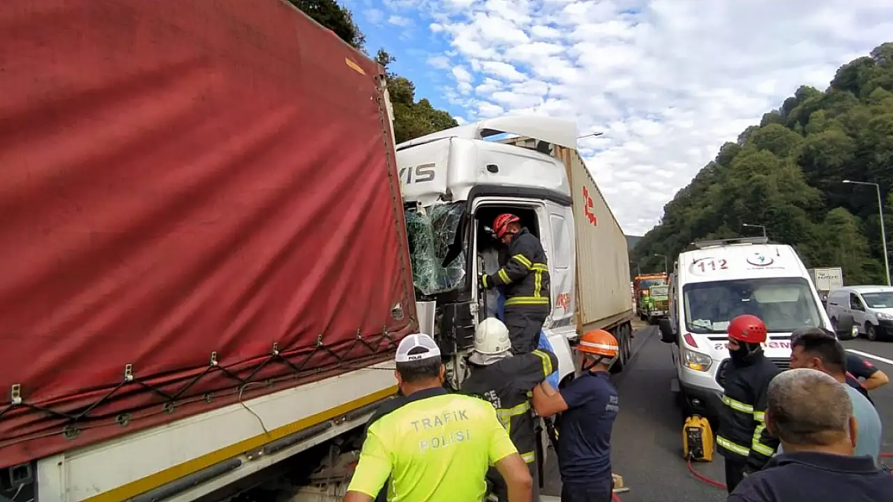 TEM Otoyolu'nun Bolu Dağı geçişinde TIR'a arkadan çarpan TIR'ın sürücüsü sıkıştığı yerden yaklaşık 45 dakikalık çalışma sonucu çıkarıldı.