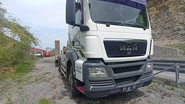 ZONGULDAK (AA) - Zonguldak'ın Kozlu ilçesinde yüklü olduğu tırdan seyir halindeyken düşen iş makinesi şarampole devrildi.