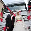 İnegöl ilçesinde dünyaevine giren bir çift, gelin arabası olarak tırı tercih etti.
