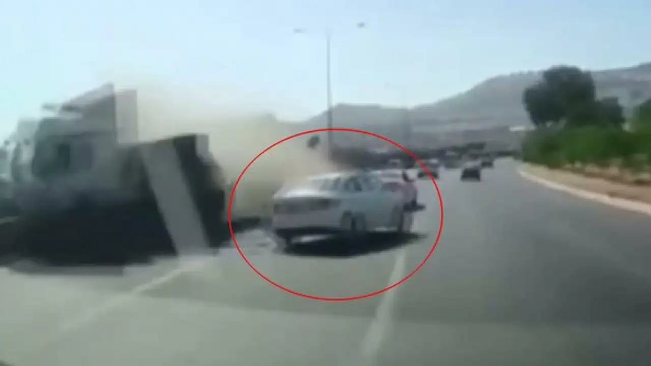 İZMİR'de lastiği patlayınca bariyerleri aşarak, karşı şeride geçen TIR'ı fark eden otomobil sürücüsü Hamza Can Erdönmez (30), son anda manevra yaparak kurtuldu. Ölüm ile yaşam arasındaki ince çizgide gidip, geldiğini belirten Erdönmez, "TIR bariyere değdiği sırada hamle yaptım. TIR karşı şeride geçti. O anki refleksle 2 şerit sağa atlayarak hayatta kaldım" dedi.