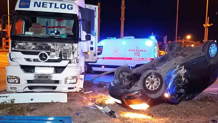 Tırın çarptığı otomobil takla attı, 1'i ağır olmak üzere 2 kişi yaralandı