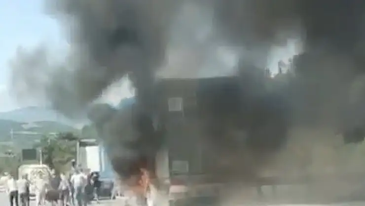 Olay, İnegöl-Bursa Yolu Dürdane Rampası üzerinde meydana geldi. Edinilen bilgiye göre, tır şoförü çıkan dumanları görünce emniyet şeridine park etti. Dumanlar bir süre sonra yerini alevlere bıraktı. Çevredeki vatandaşların ihbarı üzerine olay yerine itfaiye ve polis ekipleri sevk edildi. Yangın sebebiyle yoğun trafik oluştu. Yangın, itfaiye ekiplerinin müdahalesiyle söndürüldü. Yangında can kaybı meydana gelmezken, tırın dorsesinde maddi hasar oluştu.