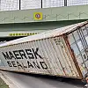 BAKIRKÖY'de TIR'ın taşıdığı konteyner üst geçide çarptı. Konteyner yola devrilirken kaza nedeniyle trafik tek şeritten kontrollü olarak sağlandı.