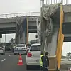 Bursa'da bir TIR'ın damperli dorsesi üst geçide takılarak asılı kaldı.