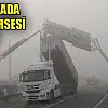 Tırın havada giden dorsesi tabelaya takıldı