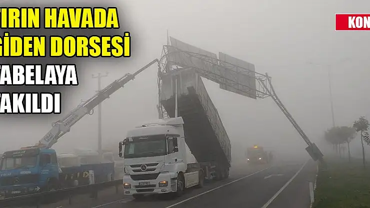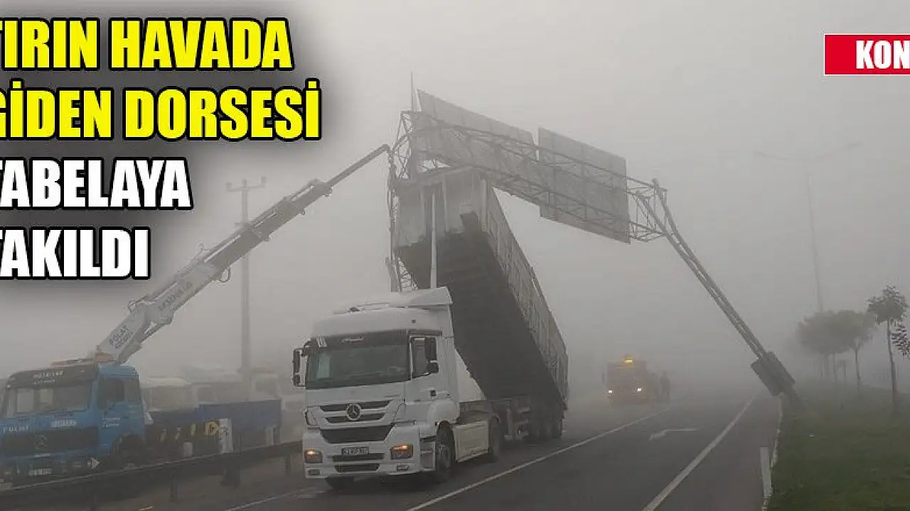 Konya'da damperi açık şekilde seyreden TIR'ın dorsesi yol üzerindeki tabelaya takıldı.
