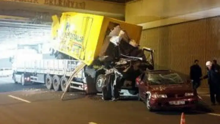 Kaza, saat 00.30 sularında Altındağ ilçesinde meydana geldi. Edinilen bilgiye göre; Samsun Yolu’ndan Siteler istikametine doğru giden Sabri Göksun kontrolündeki 21 BC 491 kasa plakalı TIR’ın taşıdığı kamyon, Bostancık Kavşağı’nda 4 buçuk metre yüksekliğindeki köprüye takıldı. Çarpmanın etkisiyle TIR’ın dorsesindeki otomobil yola düştü. Kamyonun ise yarısı dışarıda kaldı. Çarpma anında arkadan gelen başka araçların olmaması, ikinci bir kazanın yaşanmasına engel oldu.