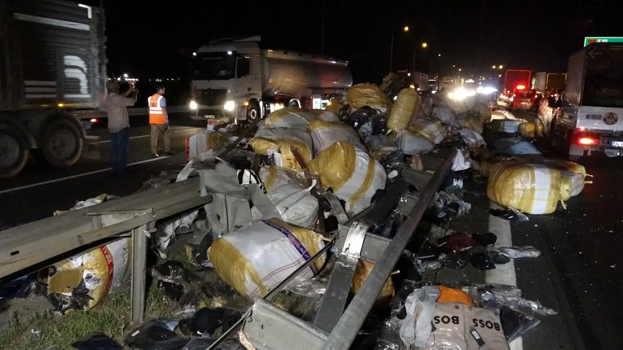 Kaza gece yarısı TEM Otoyolu'nun Kocaeli'nin Kartepe ilçesi Dumlupınar Mahallesi geçişinde meydana geldi. Ankara yönüne giden Yusuf Çelikkol idaresindeki 47 AAL 408 plakalı kıyafet yüklü TIR, virajı döndüğü sırada yükünün dengesi bozuldu. Dorse içerisinde hareket eden koliler, TIR'ın sol tarafına doğru devrilerek yolun orta refüjü ve İstanbul yönüne döküldü. Bu sırada TIR'dan dökülen yükün çarptığı bir aydınlatma direği de karşı şeride devrildi. Devrilen direk İstanbul istikametinin de 2 şeridini kapattı. Bu sırada İstanbul yönüne giden Cihan Baykuş yönetimindeki 34 GM 0431 plakalı otomobilin tüm lastikleri, devrilen elektrik direğinden yola saçılan toprak ve taş parçaları nedeniyle patladı. Kontrolden çıkan otomobil, orta refüje çarparak durabildi.