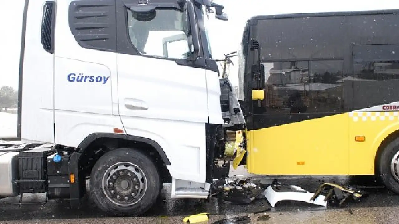 Tırla çarpışan otobüsün sürücüsü yaralandı