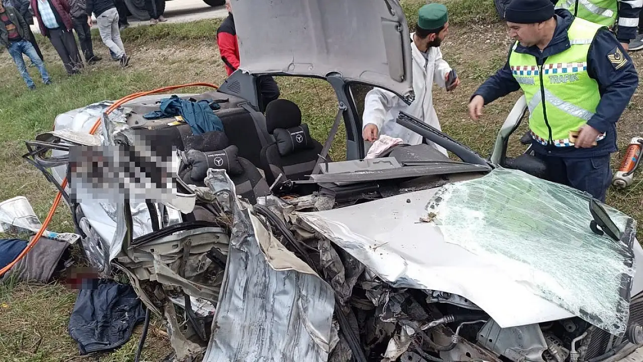 Tırla çarpışan otomobil kağıt gibi ezildi: 2 ölü