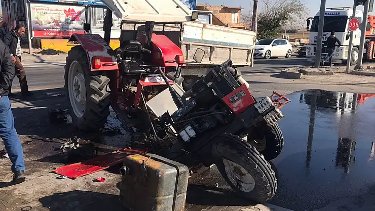 TIR'la çarpışan traktör ikiye ayrıldı