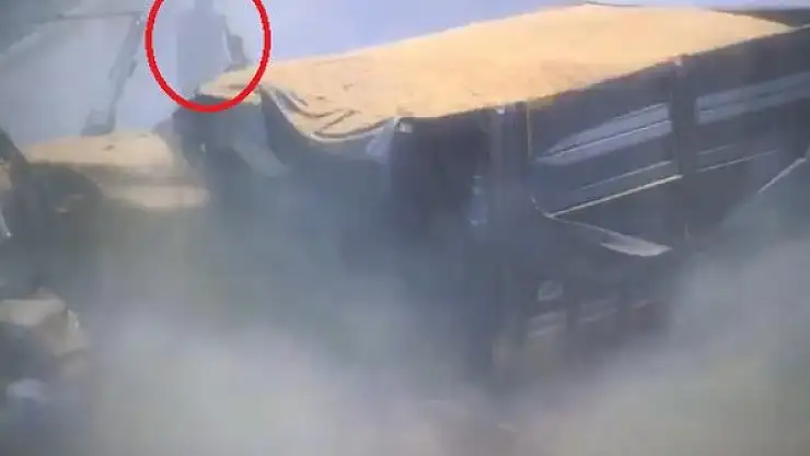 TIR'la kamyonun çarpıştığı kaza kamerada
