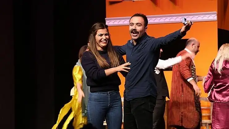 Van'da beğeniye sunulan tiyatro oyunu sonrası 'sponsor' olarak tanıtılıp sahneye davet edilen sınıf öğretmeni, meslektaşına evlenme teklifinde bulundu.