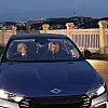 Başkan Erdoğan, plakasına Cumhurbaşkanlığı forsu takılan Togg'un mavi renkli yeni modeliyle test sürüşü yaparken, araç hakkında bilgi aldı.