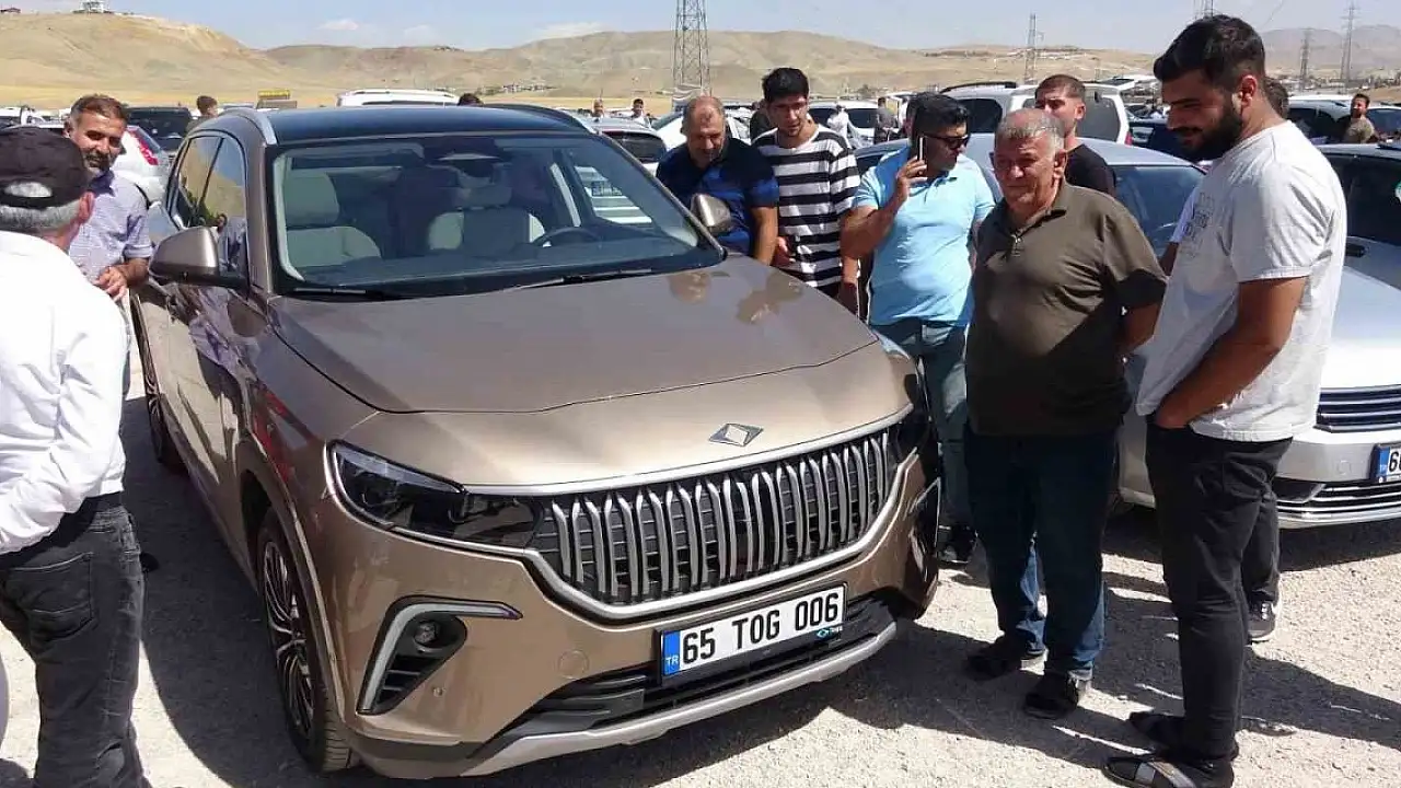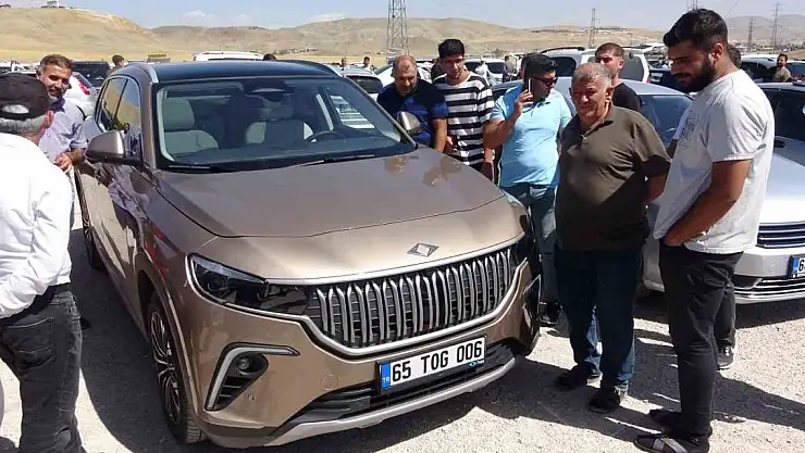 Türkiye'nin yerli otomobili Togg, Van'ın merkez Tuşba ilçesindeki ikinci el açık oto pazarında ilk kez görüldü. Yüzlerce aracın görücüye çıktığı açık oto pazarında, yerli otomobil yoğun bir ilgiyle karşılaştı. Geçtiğimiz günlerde yerli aracını teslim alan İsa Özçoban isimli vatandaş, Togg'u tanıtım için açık oto pazarına getirdi. Burada ilk kez yerli aracı gören vatandaşlar, aracı incelemeye başladı. Bol bol hatıra fotoğrafı da çeken vatandaşlar, aracın kullanımıyla ilgili sahibinden bilgi aldı.