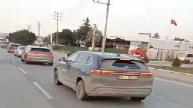 TÜRKİYE'nin yerli otomobili Togg'un test araçları, Bursa'nın Orhangazi ilçesinde seyir halindeyken cep telefonu kamerasıyla görüntülendi.