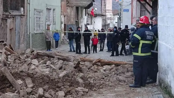 Tokat'ta metruk bir evin duvarının çökmesi sonucu meydana gelen kaza ucuz atlatıldı.